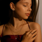- Understated yet striking, this layered necklace pairs a bold geometric curve and square detail with a classic solitaire pendant