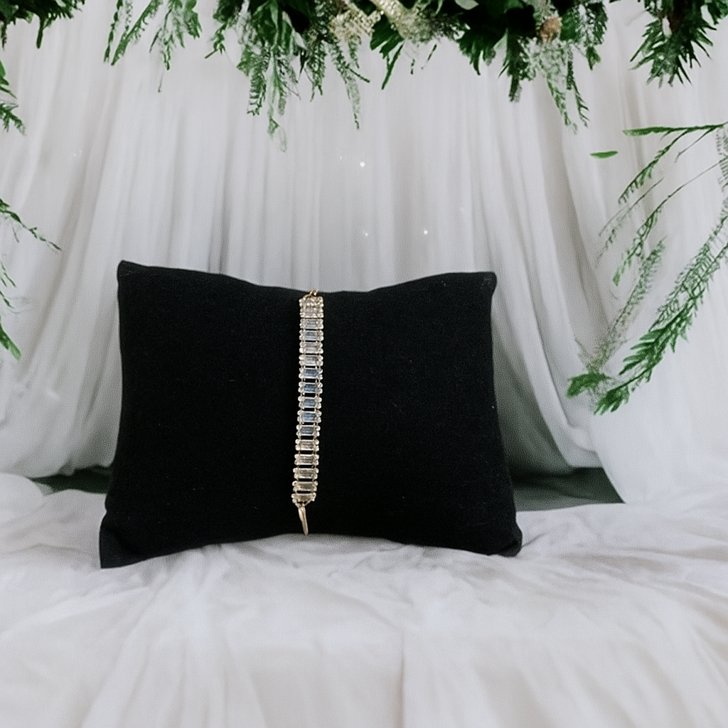 • This bracelet features a line of radiant emerald-cut stones, each meticulously set to create a refined, high-impact look