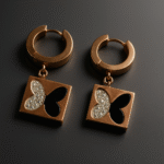 - The unique square drop design showcases crystal-paved butterfly wings contrasted with bold black enamel, making these earrings a statement of artful glamour and modern femininity