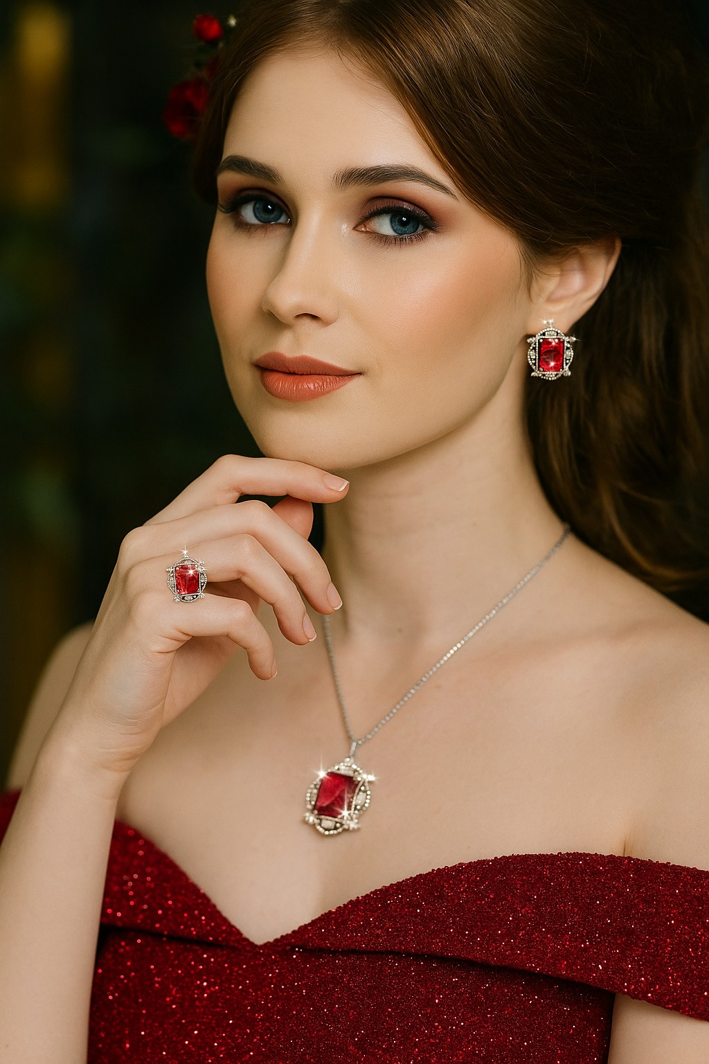- Turn every moment into a love story with our Royal Garnet Necklace Set